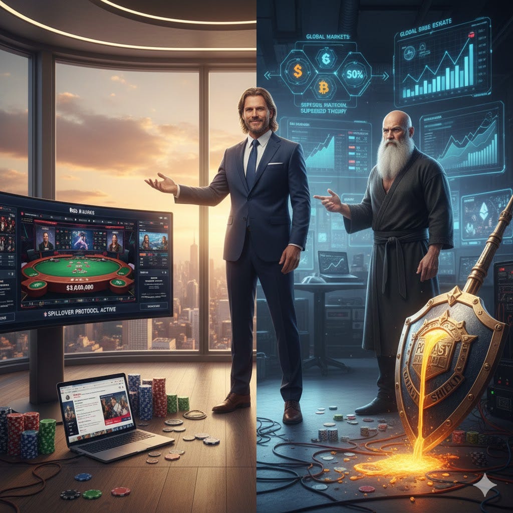 The Idle Yield: Your $5,000 is sitting in a poker account earning 0%. That is a sin. Keep the bulk of the War Chest in Money Market Funds or Staking, earning 4-5% Risk-Free. That yield pays your electric bill.